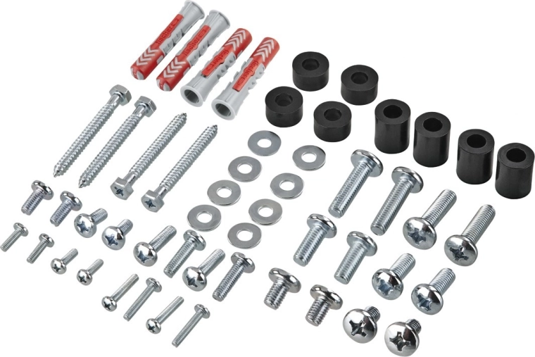 In de verpakking vind je een complete montageset inclusief premium Fischer pluggen en een boorsjabloon – montage is snel en nauwkeurig.