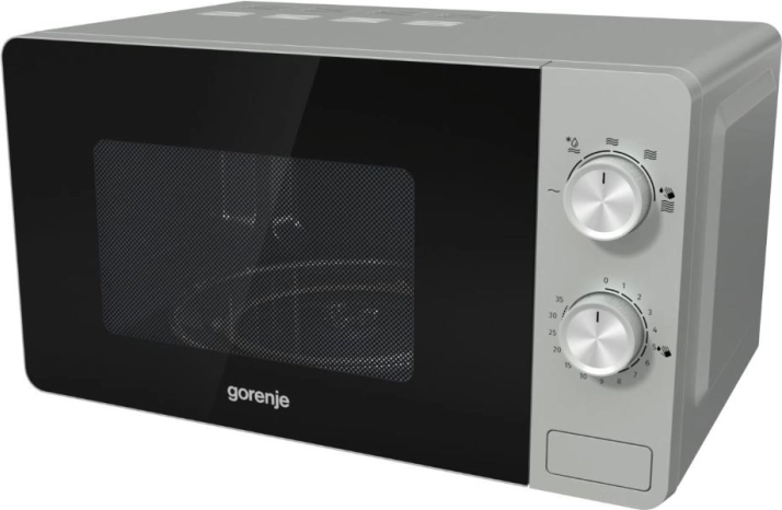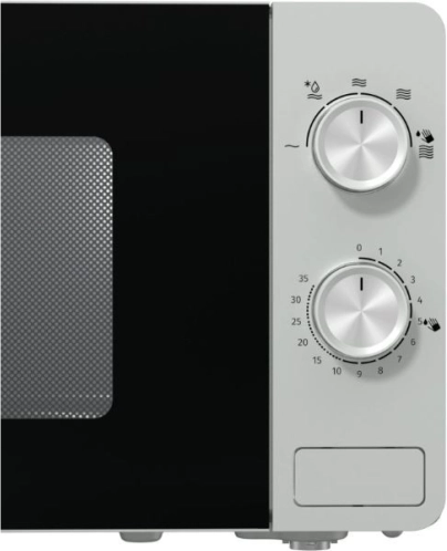 Ontdek de perfecte keukenhulp met de Gorenje magnetron, die een elegant en modern design combineert met hoge efficiëntie. Deze magnetron biedt eenvoudige bediening via twee zilverkleurige draaiknoppen, waarmee je gemakkelijk tijd en vermogen instelt. Geniet van eenvoud dankzij de gebruiksvriendelijke draaiknoppen voor tijd- en vermogensinstelling.