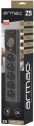 De ARMAC Z5 is een moderne overspanningsstekkerdoos, ontworpen voor de bescherming van computers, randapparatuur, tv’s, audio/video-apparatuur en huishoudelijke apparaten. De geavanceerde varistor met reactietijd onder 25 ns absorbeert pulsen tot 6000 A en beschermt aangesloten apparaten tegen gevaarlijke spanningspieken. De automatische zekering 10 A/250 V zorgt voor herinschakeling na het verhelpen van kortsluiting of overbelasting.