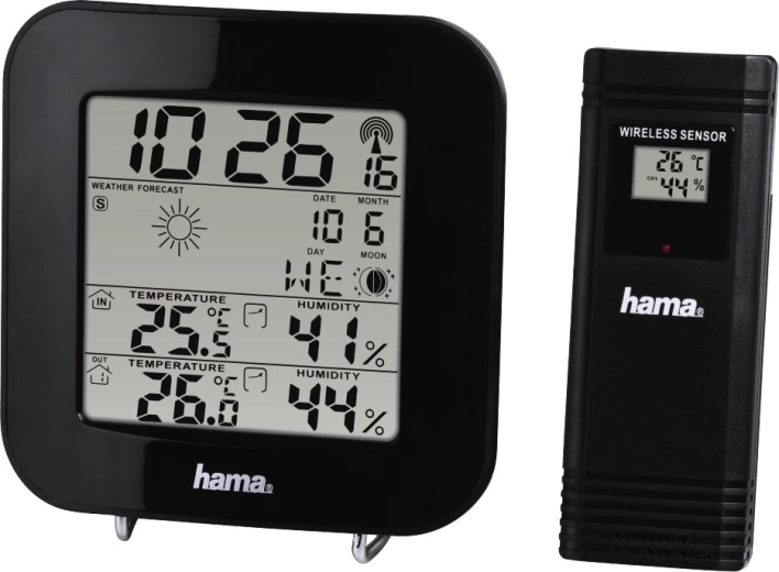 De voorspelling wordt weergegeven met vier duidelijke symbolen (zonnig, halfbewolkt, bewolkt, regen). De comfortindicator met emoji laat meteen zien hoe aangenaam het binnenklimaat is. Praktisch is ook het min./max.-geheugen voor temperatuur en luchtvochtigheid en de mogelijkheid om tot 3 draadloze sensoren aan te sluiten voor verschillende zones van huis of appartement.