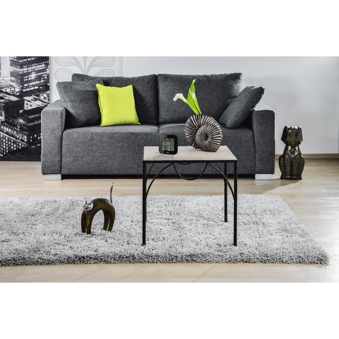 Het display met blauwe achtergrondverlichting garandeert uitstekende leesbaarheid. Verder aanwezig: wekker met snooze, 12/24‑uursweergave en handmatige instelling van de tijdzone. De batterijstatus van zowel station als sensor houdt u voortdurend in de gaten dankzij de capaciteitsindicator.