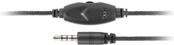 Duurzame textielkabel met ingebouwde module voor volumeregeling en 3.5mm stereo connector voor eenvoudige aansluiting.