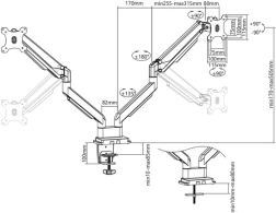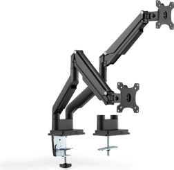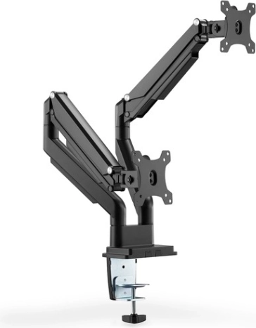 Dubbele monitorarm maakt gemakkelijk en ergonomisch werken mogelijk met monitoren van 15" tot 32". De arm is eenvoudig te verstellen dankzij de geïntegreerde gasveer en biedt ruime positioneringsmogelijkheden voor maximaal comfort.