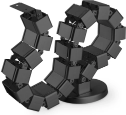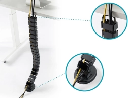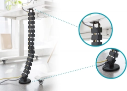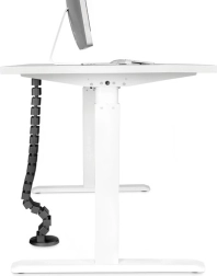 Elastische kabelorganizer DIGITUS zorgt voor een efficiënte kabelorganisatie bij in hoogte verstelbare bureaus. Doordat hij tijdens het verlagen van het bureau inkrimpt, voorkomt hij kabelwarboel en de metalen voet zorgt voor stabiliteit op de vloer.