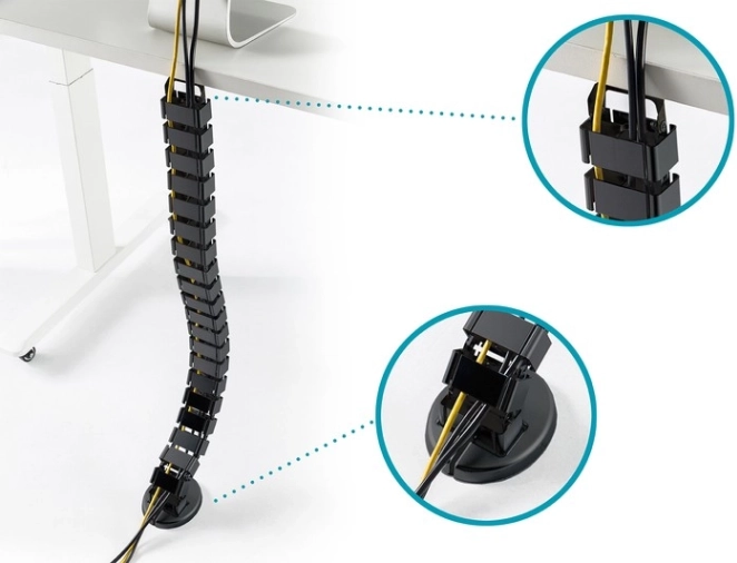 - Geschikt voor in hoogte verstelbare en vrijstaande bureaus, verbergt kabels van vloer tot bureau.