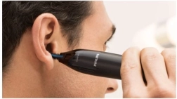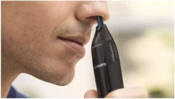 De trimmer is waterdicht voor eenvoudig schoonmaken en werkt op een AA-batterij, wat mobiliteit garandeert.