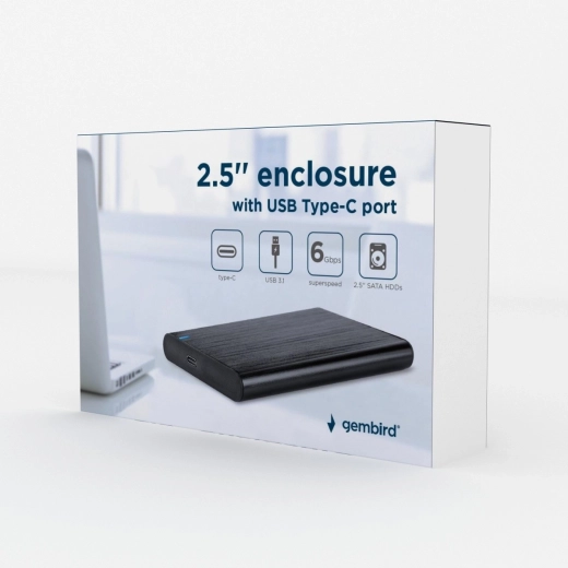 Compacte externe behuizing voor 2,5" schijven met USB 3.1-interface en USB‑C‑aansluiting biedt snelle gegevensoverdracht, eenvoudige gereedschapsloze installatie en een duurzame aluminium behuizing met status‑LED. Ideaal voor HDD/SSD tot 9,5 mm en capaciteiten tot 4 TB.