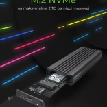 Verander uw NVMe‑schijf in een draagbare, snelle en stijlvolle opslagoplossing. De aluminium behuizing met diepe ribben voert warmte doeltreffend af, zodat u geniet van stabiele prestaties, ook bij langdurige overdrachten. Dynamische RGB‑verlichting geeft uw setup een aantrekkelijke look, of u nu werkt of speelt.