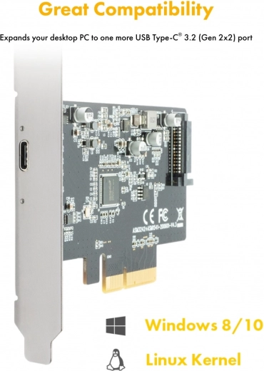Zoek je een snelle en veelzijdige aansluiting voor externe schijven, docks en moderne randapparatuur? Deze PCIe-kaart voegt aan je desktop een krachtige USB‑C 3.2 Gen 2x2-interface toe met een theoretische bandbreedte tot 20 Gb/s, ideaal voor back-ups, multimediawerk en professioneel gebruik.