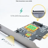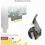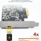 Dankzij de ondersteuning van PCI Express 3.0 (x4) en compatibiliteit met x4/x8/x16-slots zorgt de kaart voor een stabiele en snelle verbinding. Geïntegreerde blauwe LED-lampjes geven voeding en actieve verbinding aan, zodat je de status van het apparaat altijd onder controle hebt. De kaart is gebaseerd op beproefde controllers Asmedia ASM1541 en ASM3242 voor maximale compatibiliteit en prestaties.
