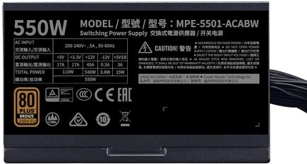 Cooler Master MWE 550W Bronze V2 is een uitstekende oplossing voor efficiënte en veilige voeding van uw computer. Hij is uitgerust met 80 Plus-certificering, DC-DC+LLC-technologie, één +12V-rail en een 120mm HDB-ventilator voor stille werking.