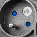 De stekkerdoos kan zelfstandig worden gebruikt of met metalen beugels worden geïntegreerd in 19" kasten, waar hij dient als betrouwbare stroomvoorziening voor geïnstalleerde apparaten. Beschermkleppen op de stopcontacten verhogen de operationele veiligheid, wat gewaardeerd wordt in kantoren, productielijnen en vergaderruimtes.