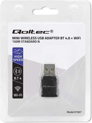Ontdek de draadloze mini-adapter van het merk Qoltec, die uw computer voorziet van snelle internettoegang en Bluetooth-communicatie. Dankzij het compacte ontwerp ideaal voor reizen. Standaard N met MIMO-technologie maakt het mogelijk om signalen via meerdere antennes te verzenden, wat zorgt voor stabiele en ononderbroken datacommunicatie.
