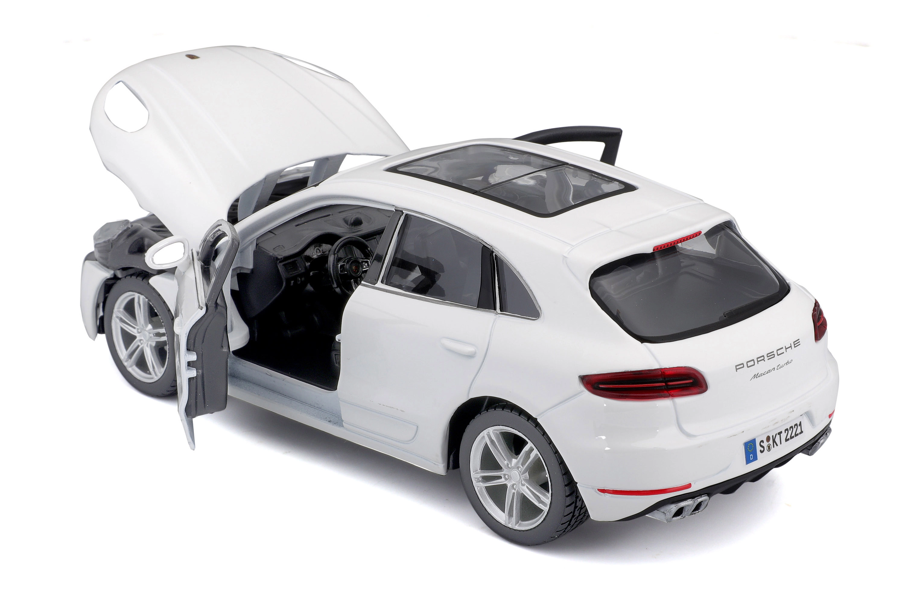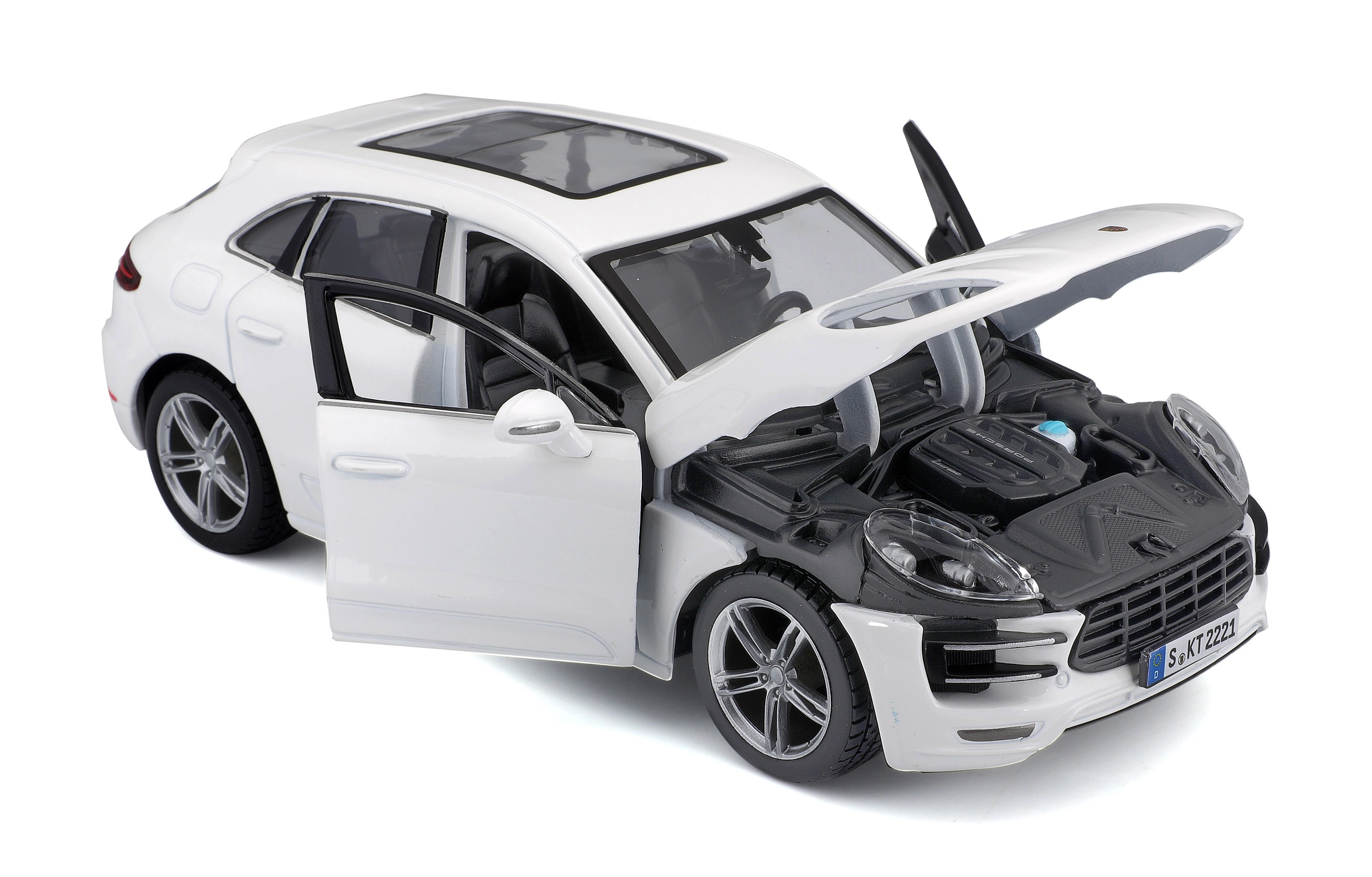 Een verfijnd model van de Porsche Macan dat indruk maakt met zijn gedetailleerde elementen, zoals openende deuren en motorkap.