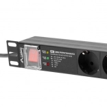 Robuuste PDU-lijst voor 19" behuizingen, ontworpen voor horizontale montage in 1U-positie en zorgt voor stabiele voeding in veeleisende omgevingen. Dankzij overspanningsbeveiliging type 2, een actief storingsfilter en een automatische zekering worden gevoelige apparaten beschermd tegen pieken en overbelasting.