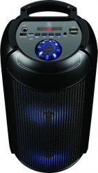 Bluetooth 5.0, FM-radio, USB, microSD, AUX en een microfooningang. Bediening via het paneel met knoppen, een draaiknop en LED-display.