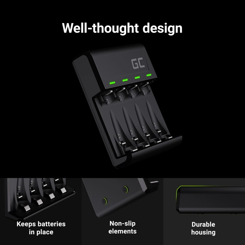 Laad slim en comfortabel – de VitalCharger van GREEN CELL is een compacte lader met voeding via USB-C en Micro USB, zodat u batterijen voor camera’s, controllers of zaklampen thuis, in de auto en onderweg via een powerbank of laptop kunt opladen. In de verpakking zitten vier hoogwaardige AA-accu’s van 2000 mAh Ni-MH.