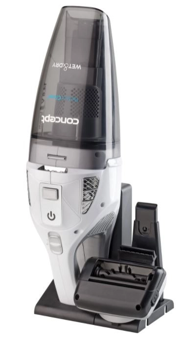 De Concept VP4370 is uitgerust met een lange kierenzuiger voor het schoonmaken van moeilijk bereikbare plaatsen. Hij zuigt eenvoudig elke hoek, de ruimte tussen matrassen, het interieur van de auto of de bodem van een lade. Voor nat zuigen is er een praktische trekker beschikbaar die aan het oppervlak hecht en alle vloeistof perfect opneemt. Een praktische standaard maakt het eenvoudig om de stofzuiger op te bergen wanneer je hem niet nodig hebt of wanneer hij moet worden opgeladen.