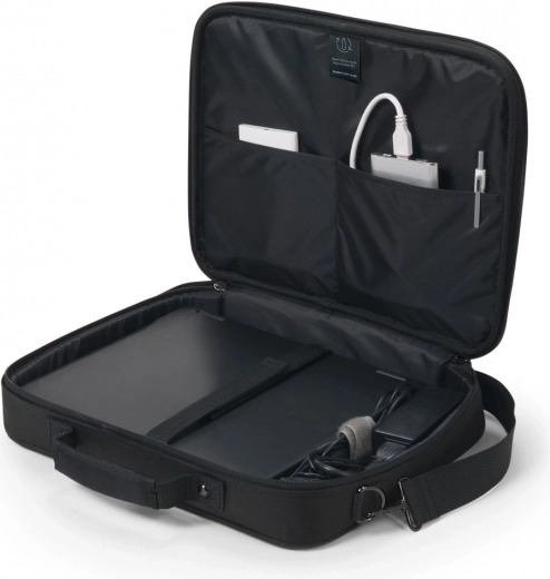 Bescherm uw laptop stijlvol en ecologisch. De compacte Eco Multi BASE tas garandeert optimale veiligheid met een gevoerd compartiment voor laptops van 14 tot 15,6 inch. Een flexibele band houdt het apparaat stevig op zijn plaats. Extra stabiliteit en bescherming worden gegarandeerd door het metalen frame, terwijl het lichte ontwerp eenvoudige draagbaarheid mogelijk maakt. De voorzak is ideaal voor het opbergen van een smartphone, kabels, pennen of opladers.
