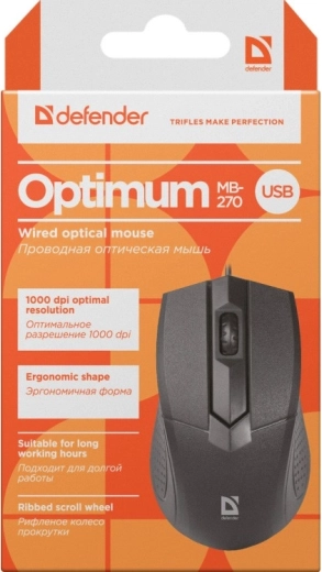Zoek je een eenvoudige en betrouwbare muis voor kantoor- en thuisgebruik? De DEFENDER Optimum MB-270 met optische resolutie van 1000 DPI zorgt voor vloeiende en precieze cursorbewegingen op de meeste oppervlakken. Dankzij de bedrade aansluiting hoef je geen batterijen te vervangen en heb je geen last van signaaluitval.