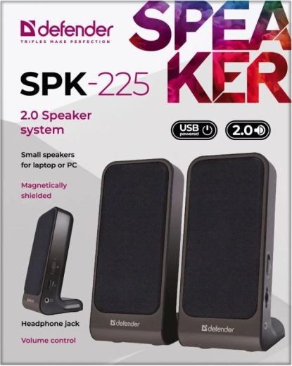 De DEFENDER SPK-225 luidsprekers leveren betrouwbaar geluid in een compact chassis dat op elk bureau past. Dankzij de USB-voeding is geen aparte adapter nodig en sluit je ze eenvoudig aan op laptop of pc. Het minimalistische design met stoffen grille past in ieder interieur.