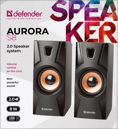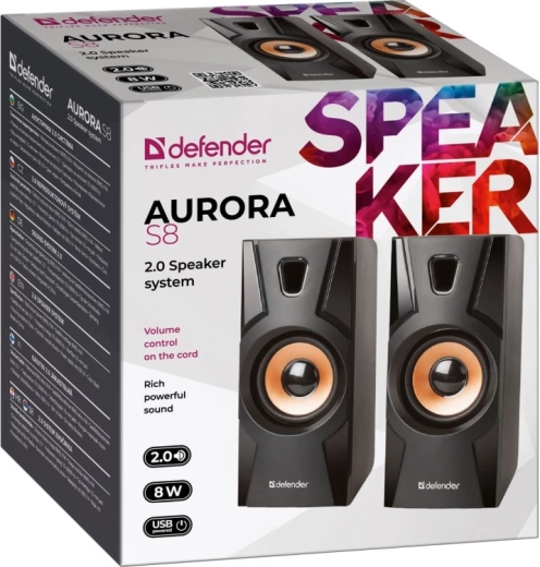 De DEFENDER Aurora S8 zijn stijlvolle 2.0-bureauluidsprekers die verrassen met een rijke en gebalanceerde sound en een modern design met koperen accenten. De compacte afmetingen besparen ruimte op je bureau, terwijl ze dankzij de vibrerende membranen toch verrassend volle bassen bieden.