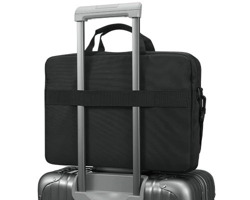 Dankzij de gevoerde vakken, snelle toegang via het voorvak met rits en de verstelbare schouderriem heb je alles belangrijk bij de hand en goed beschermd. De geïntegreerde band voor bevestiging aan het koffergreep vergemakkelijkt het reizen.