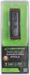 De Esperanza Gamma Pro combineert de functies van een voorlicht voor de fiets en een krachtige zaklamp. De robuuste aluminium behuizing, de heldere CREE T6 LED en de gelijkmatige lichtbundel zorgen voor veilig rijden in de stad en daarbuiten. In de MAX-stand bereikt hij tot 2100 lx en verlicht hij de weg betrouwbaar.