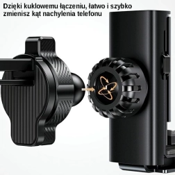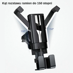 Elegante en functionele autohouder die direct op het ventilatierooster wordt gemonteerd. Dankzij het gravitatiemechanisme hoef je je telefoon alleen maar te plaatsen en de armen klemmen automatisch. De driehoekige constructie biedt hoge stabiliteit, zelfs bij hard remmen, zodat je smartphone veilig op zijn plek blijft.