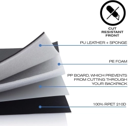 De rugzak opent uitsluitend aan de achterkant, wat de toegang voor zakkenrollers bemoeilijkt. Verborgen vakken en ritsen bieden extra bescherming.