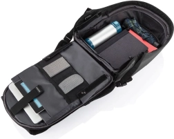 Verder beschikt hij over een geïntegreerde USB-poort voor het opladen van je apparaten onderweg, een organizer met praktische meshvakken en een speciaal gewatteerd compartiment voor laptops tot 17" en tablets tot 12,9". Reflecterende elementen zorgen voor zichtbaarheid bij weinig licht.