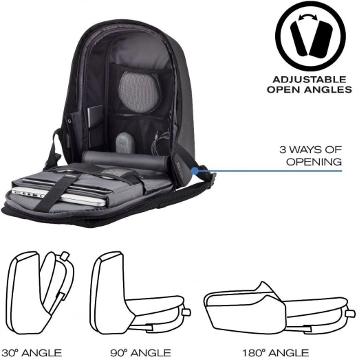 - Mogelijkheid tot volledig openen: Rugzak kan worden geopend tot een hoek van 180 graden voor eenvoudige toegang.