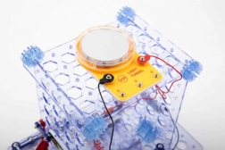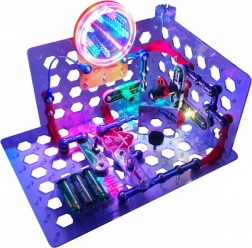 Alle onderdelen klik je eenvoudig vast op het transparante raster. De bouw is snel, overzichtelijk en ideaal voor de eerste stappen in elektronica.