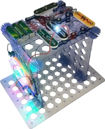 De Boffin II 3D bouwset tilt klassieke snap‑circuits naar een nieuwe dimensie. Met vijf basisrasters (1 groot + 4 kleine) bouw je projecten zoals een telegraaftoren, lichttunnel, sirene, vuurwerk of 3D‑gloed. Elk project is duidelijk beschreven in de complete handleiding – zo controleer je eenvoudig dat alles werkt.