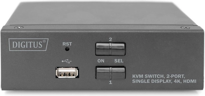 Digitus 2-poorten HDMI KVM schakelaar stelt u in staat om twee PC's te bedienen vanaf één toetsenbord en muis en biedt tegelijkertijd ondersteuning voor 4K resolutie. Met een eenvoudige druk op de knop of sneltoets kunt u gemakkelijk schakelen tussen de twee computers zonder de kabels te hoeven beheren.