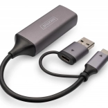 De adapter biedt flexibele verbindingsmogelijkheden met USB-C en USB-A poorten, compatibel met oudere apparaten.
