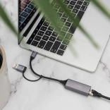 De Digitus USB-C naar USB-A adapter naar RJ45 2.5 Gigabit Ethernet is ideaal voor het uitbreiden van de connectiviteit van uw apparaat met een netwerkaansluiting tot 2,5 Gbps. Deze adapter ondersteunt een breed scala aan besturingssystemen, inclusief Windows, macOS, Linux, Android en iOS. Dankzij zijn compacte afmetingen en elegante aluminium ontwerp is hij geschikt voor gebruik onderweg en biedt hij hoge duurzaamheid en efficiëntie.