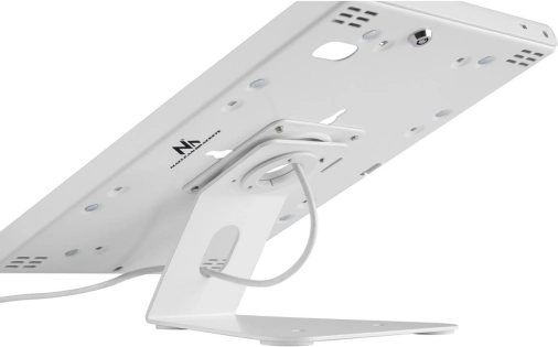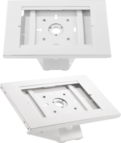 Elegante en betrouwbare tabletstandaard geschikt voor zowel tijdelijk als permanent gebruik, met een gesloten metalen constructie voor veiligheid en duurzaamheid. Deze standaard maakt het mogelijk de positie van de tablet van horizontaal naar verticaal in te stellen, ideaal om content aan uw behoeften aan te passen.