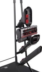 Het ontwerp van de standaard maakt flexibele opslag van tot wel vier verschillende reinigingsopzetstukken mogelijk, waardoor het een praktisch hulpmiddel is voor elk huishouden. Hij is uitgerust met een kunststof handgreep voor stevige bevestiging van de stofzuiger en een gebalanceerde basis die voldoende ruimte voor onderdruk biedt en stabiliteit tijdens het gebruik garandeert. Antislip EVA pads onder de basis voorkomen krassen op de vloer.