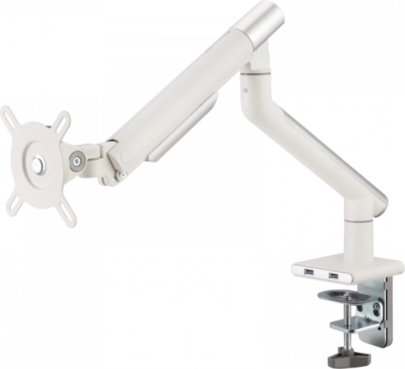 Geniet van het comfort en de ergonomische inrichting van je werkplek met onze premium enkelvoudige monitorarm. Deze arm ondersteunt monitoren van 17 tot 32 inch en met een gewicht van 2–9 kg, ideaal voor de meeste werkstations. Dankzij de geïntegreerde gasveer is de hoogte en kijkhoek eenvoudig aan te passen. De arm is uitgerust met twee USB 3.0-poorten voor snelle toegang en het aansluiten van externe apparaten.