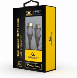 Premium HDMI-kabel van 10 m voor betrouwbare overdracht van beeld en geluid volgens de HDMI 2.0-standaard. Ondersteunt 4K UHD bij 60 Hz, heeft vergulde connectoren, een duurzame nylon vlechtmantel en metalen premium connectorbehuizingen voor een lange levensduur en een stabiel signaal. Compatibel met alle apparaten met een HDMI-interface.