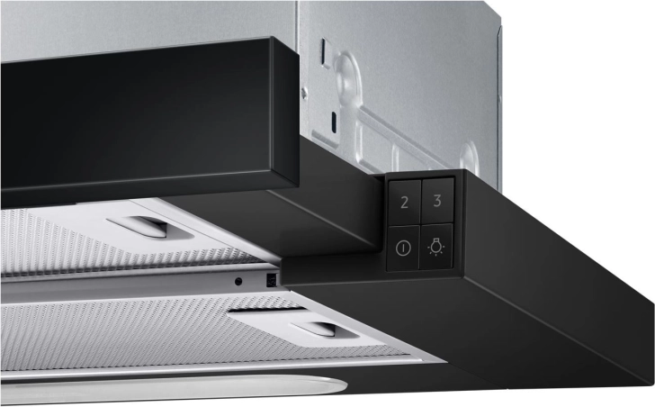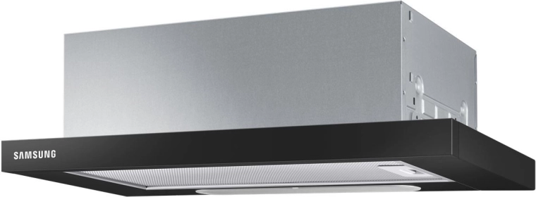 De Samsung NK24M1030IB is een compacte onderbouw afzuigkap die eenvoudig onder een keukenkastje wordt geïnstalleerd en direct de luchtkwaliteit tijdens het koken verbetert. De tijdloze combinatie van zwart en roestvrij staal past in de meeste keukens, terwijl de metalen filters vet effectief opvangen en het onderhoud vereenvoudigen.