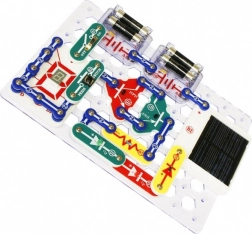 Onderdelen worden met snapcontacten op de basisplaat bevestigd. Kleuraanduidingen en componentlabels maken de oriëntatie makkelijk, ook voor kinderen vanaf 8 jaar.