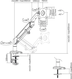 De ergonomische monitorarm biedt een uitstekende oplossing voor kantoor en thuis. Eenvoudige installatie dankzij VESA: 75x75, 100x100 mm. Met de gasveer en verstelbare gewrichten zijn kantelen, draaien en hoogteverstelling mogelijk, wat het comfort en de zichtbaarheid tijdens het werk verhoogt. Voordelen van de houder: