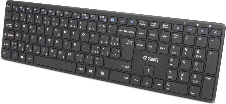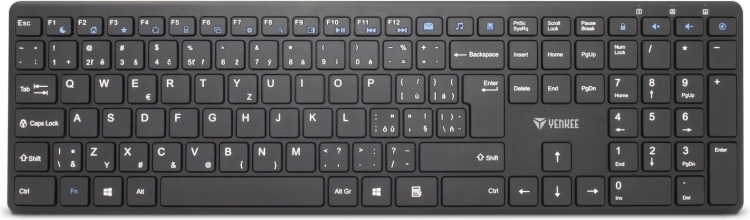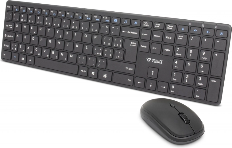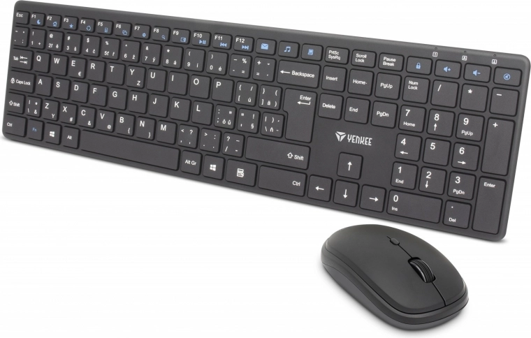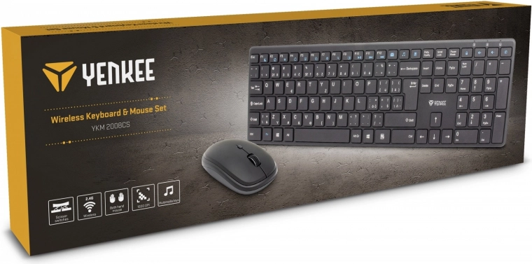 De draadloze set toetsenbord en muis Yenkee Tibe kenmerkt zich door een betrouwbare 2,4 GHz-verbinding met een bereik tot 10 meter. Het toetsenbord is voorzien van een numeriek gedeelte en extra functies voor efficiënte bediening. De optische muis maakt het mogelijk om de resolutie van 800 tot 1600 DPI aan te passen, wat zorgt voor afstemming van de gevoeligheid op individuele voorkeuren.