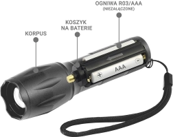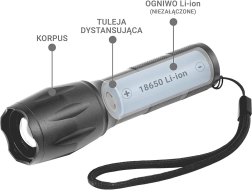 Voeding: 3x AAA/ R03 of 1x Li-ion 18650 (niet inbegrepen)