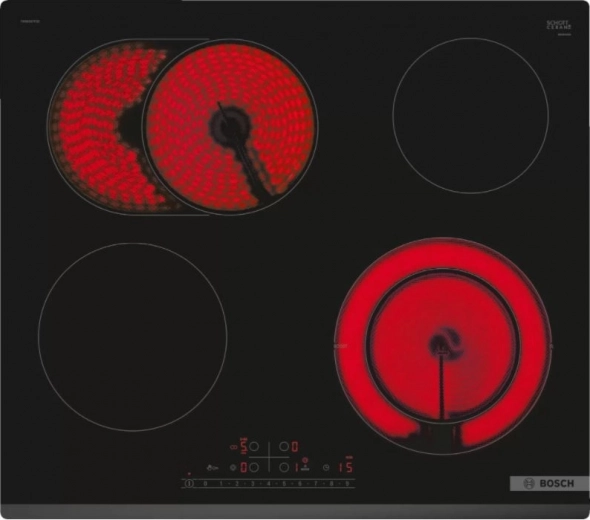 Deze glaskeramische kookplaat vereenvoudigt het dagelijks koken: het intuïtieve DirectSelect-paneel laat je direct de kookzone, het exacte vermogensniveau en extra functies kiezen. De variabele 21 cm zone past zich aan de grootte van de pan aan, terwijl de Combi-zone ideaal is voor grotere of langwerpige pannen, zoals braadsledes.