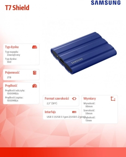 Zoek je snelle, veilige en compacte opslag voor werk en reizen? SAMSUNG T7 Shield 2 TB combineert topsnelheden van USB 3.2 Gen 2 en PCIe NVMe met extra hoge robuustheid. Bewerk beelden direct vanaf de schijf, maak in een oogwenk back-ups van grote projecten en houd je data overal veilig.