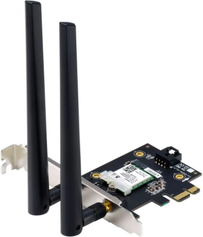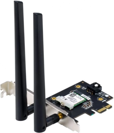 De ASUS PCE‑AX1800 is een compacte PCIe-adapter die het draadloze internet van je pc naar een hoger niveau tilt. Ondersteuning voor Wi‑Fi 6 levert hogere doorvoersnelheden, lagere latentie en een betrouwbaarder signaal, zelfs in dichtbevolkte netwerken. Twee externe, verstelbare antennes zorgen voor stabiele ontvangst en krachtige dekking.