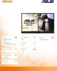 De ASUS ZenScreen MB166C is een lichte en draagbare 15,6" Full HD monitor, ideaal voor professionals onderweg. Het biedt brede kijkhoeken, het matte scherm minimaliseert reflecties en dankzij de IPS-technologie zorgt het voor consistente kleuren.